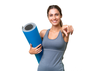 yoga woman with matt and bottle isolated