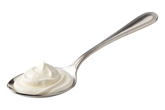 Bowl of fresh greek yogurt or sour cream isolated on transparent background.
