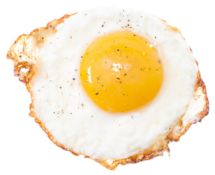 Cartoon style fried egg on transparent background illustrating playfulness