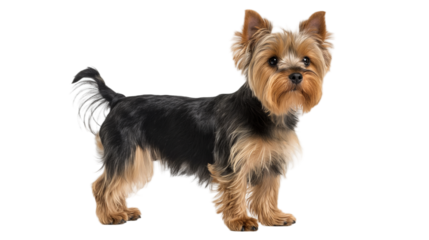Set of yorkshire terrier dog isolated on transparent background. Concept of pet.