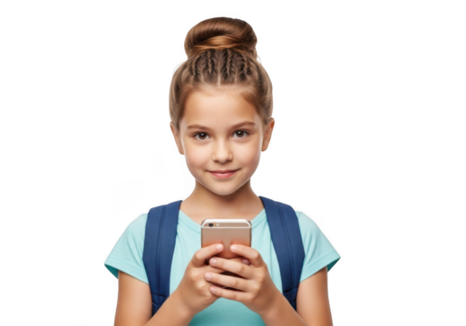 Young Girl Engaging With Smartphone On Transparent Background PNG Images