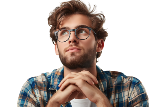 Young couple transparent background contemplative expression