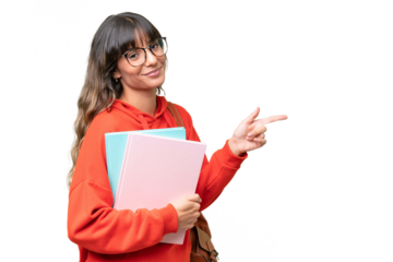 Teenager student caucasian girl over isolated background pointing up a great idea