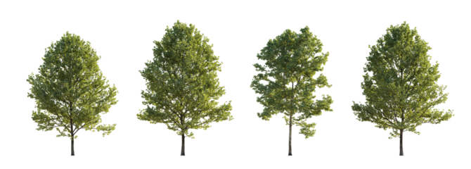 Tilia cordata set street summer trees medium and small isolated png on a transparent background premium cutout (Small-leaved linden, European linden)