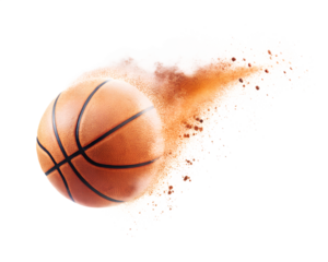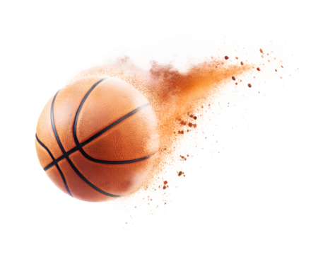 Dynamic basketball motion sports arena png transparent background white dust explosion high energy concept