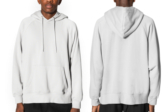 Png gray hoodie mockup for winter youth apparel shoot rear view