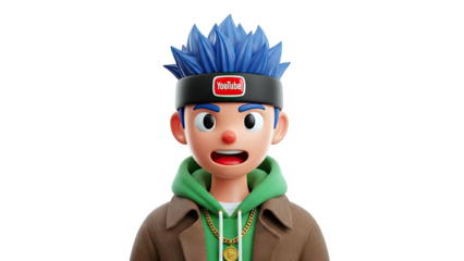 3D Cartoon Boy with YouTube Headband and Play Button Pendant
