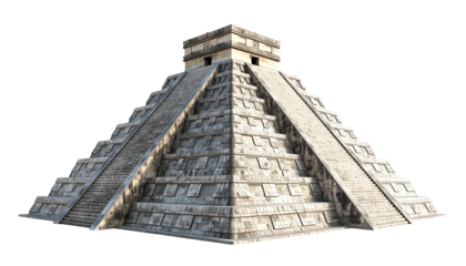 3d rendering of an ancient mayan pyramid showcasing intricate stonework and steep stairs, set against a transparent background