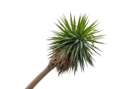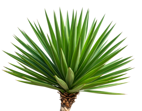 A vibrant green spiky-leafed yucca plant with a textured trunk, isolated against a solid transparent background, perfect for transparent use. background removed