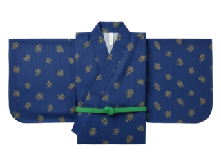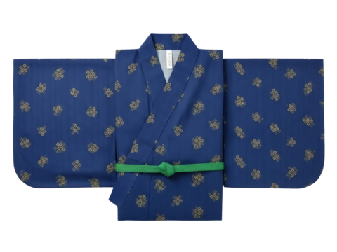 Isolated Blue Yukata Kimono with Green Obi Belt, Traditional Japanese Summer Garment