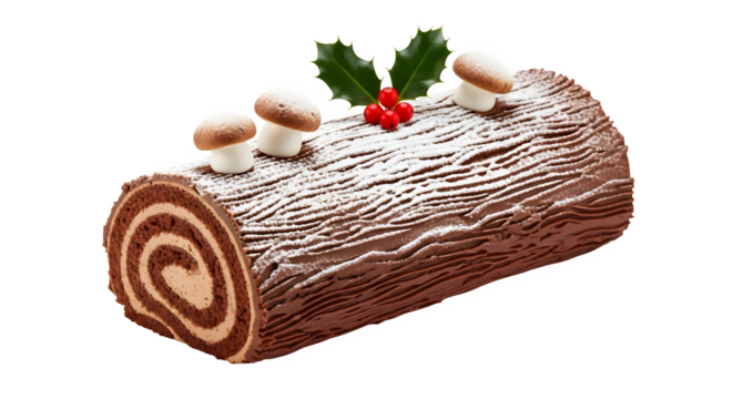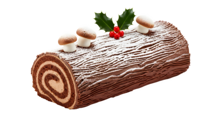 Chocolate Yule Log Cake, isolated on transparent background