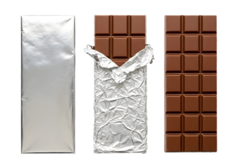 Chocolate bars in different packaging on transparent background
