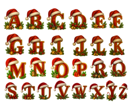 Alphabet letters A to Z composed of red roses and green leaves isolated on transparent background