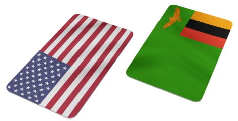 American and Zambian Flags on Rounded Rectangle Cards Representing International Relations and Partnership