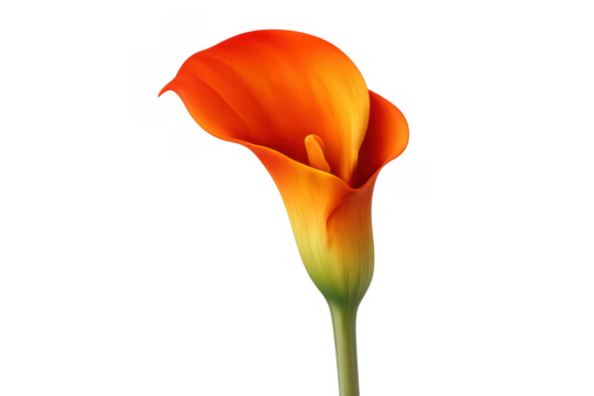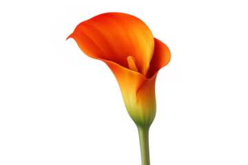 Orange calla lily, zantedeschia, showcasing its unique form and elegant color, isolated with a transparent background