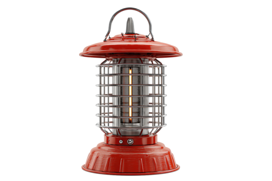 Portable solar bug zapper lantern featuring a mesh frame perfect for camping and backyard use isolated on transparent background PNG