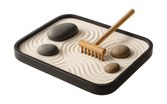 Mini zen garden with sand and stones, perfect for a tranquil cottage corner.