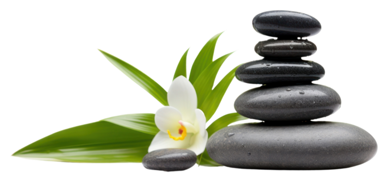 Calm Spa Stones with Lotus Blooms Isolated on Transparent Background
