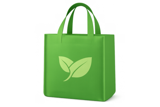 Green reusable shopping bag representing ecological products and sustainable shopping, a symbol of environmental care. Transparent background