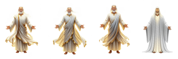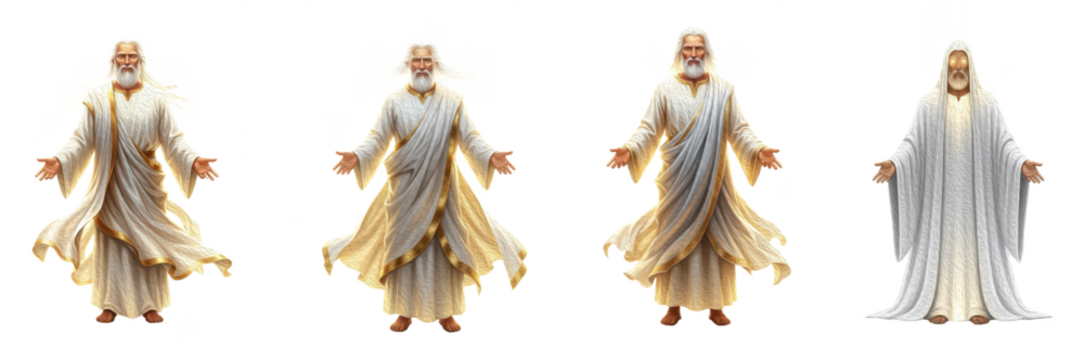 Set of majestic ancient Greek god Zeus characters with golden robes and divine light for mythology designs, PNG, Oil Paint