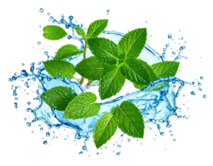 Refreshing splash of water with cucumber slices and mint leaves for summer beverages