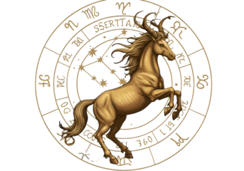 Gold Horse Illustration Within Zodiac Constellation Symbol On Isolated Black Background