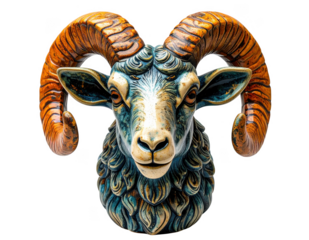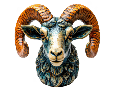 Hand painted ceramic goat zodiac ornament with subtle texture, isolate on white background.