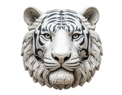 Sculpted limestone tiger zodiac head with fine detailing, isolate on white background