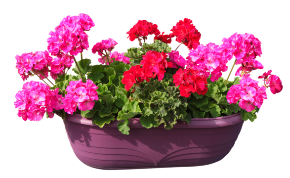 Bright zonal flowers with colorful petals and green leaves showing natural garden plant beauty and vibrant floral detail isolated on white background