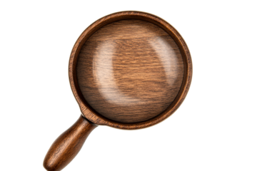 Wooden magnifying glass with lens effect detail , cut out transparent