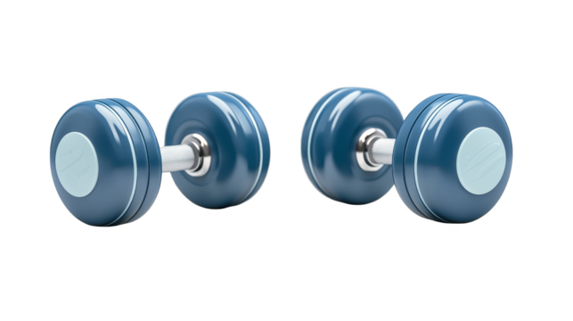 Pair of dumbbells on a vibrant blue and green gradient background for fitness blue