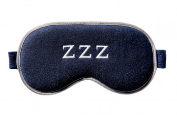 Dark blue sleep mask with embroidered zzz letters isolated on a transparent background cover