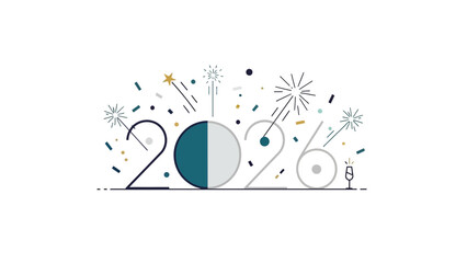 Minimalist graphic design celebrating the arrival of the new year 2026 featuring abstract confetti bursts and a stylized numeral zero