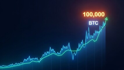 Digital Financial Chart Showing Bitcoin Reaching 100,000 Price Milestone