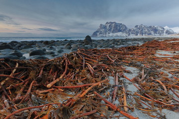 Utakleiv beach-NEwards view to mounts lining Steinsfjorden N.shore. Vestvagoya-Nordland fylke-Norway. 0200