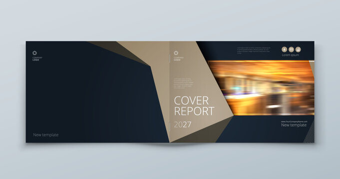 Horizontal Brochure template layout design. Corporate business annual report, catalog, magazine mockup. Layout with modern beige elements and photo. Creative poster, booklet, flyer or banner concept