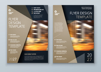 Flyer design. Corporate business report cover, brochure or flyer design. Leaflet presentation with abstract beige accent, polygonal shaped background. Modern poster magazine, layout, template. A4.