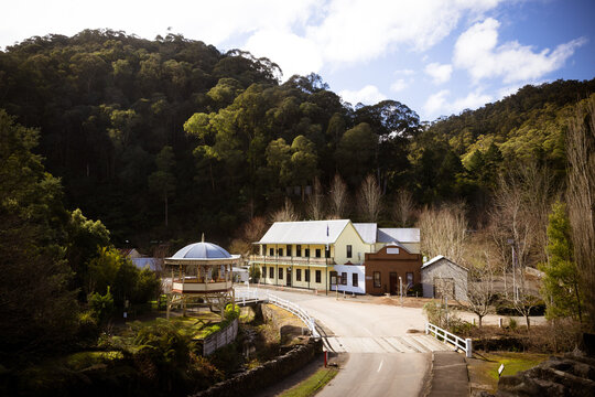 WALHALLA, AUSTRALIA - AUGUST 8 2025: Iconic Walhalla Band Rotunda on a winters afternoon in Walhalla
