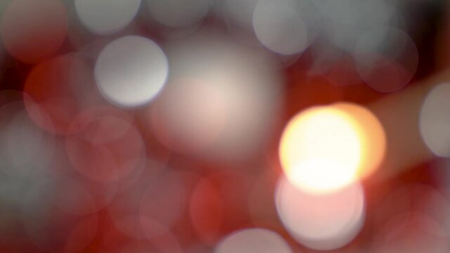 Conceptual blur, red and white Christmas bubbles with 3 lanterns that light up and a final one on top, represent the three kings and the child Jesus