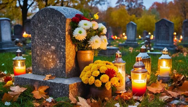 All Saints Day: Cemetery in November. Wszystkich Świętych.