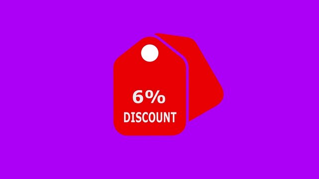 6 percent discount tag icon animation on black background representing sale offer pricing and promotion