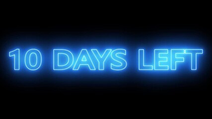 10 days to go animation on black background, days count animation, 10 days count in a month with days to go text animation.