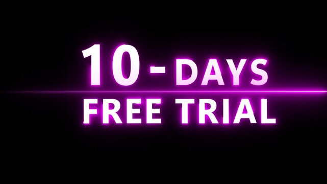 glowing neon 10 Days Free Trial Banner icon animation on black background. 10 days free trial label icon badge. 10 days free trial icon animation. Business products 10 days free trial offer video.