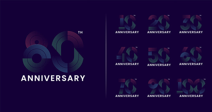 Colorful line anniversary logo collection. Number symbol with technology or digital concept for birthday celebration