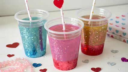 Valentine's day glitter drinks sparkling juice cups for kids party celebration festive beverages fun 100
