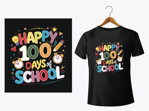 Colorful happy 100 days of school t shirt design featuring school icons and typography