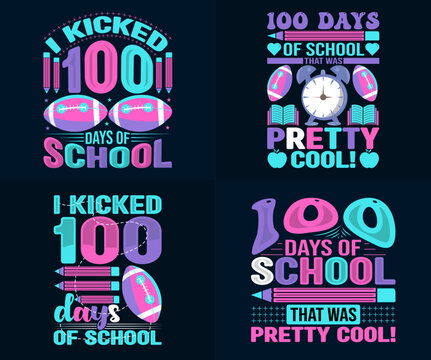100 Days of School typography design on plain white transparent isolated background for card, shirt, hoodie, sweatshirt, apparel, tag, mug, icon, poster or badge