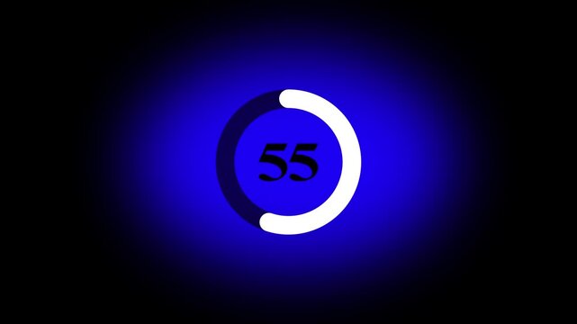 Numerical counting from 0 to 55. Countdown timer from 0 to 55 seconds real time. Video with 55 Percent Element on Colorful Background.