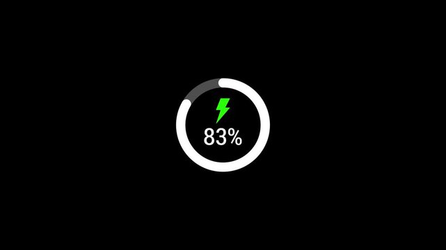 Abstract battery charging animation. Battery charging 0 to 100 percent with futuristic circle design on black background. 4k video