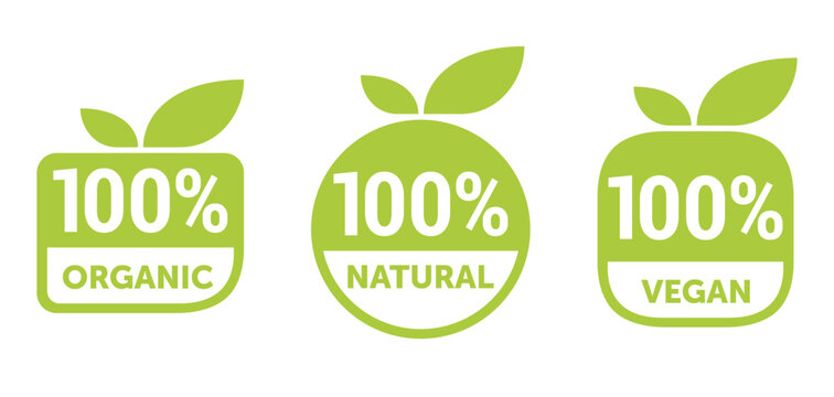 100% natural, organic, vegan product label with plant symbol